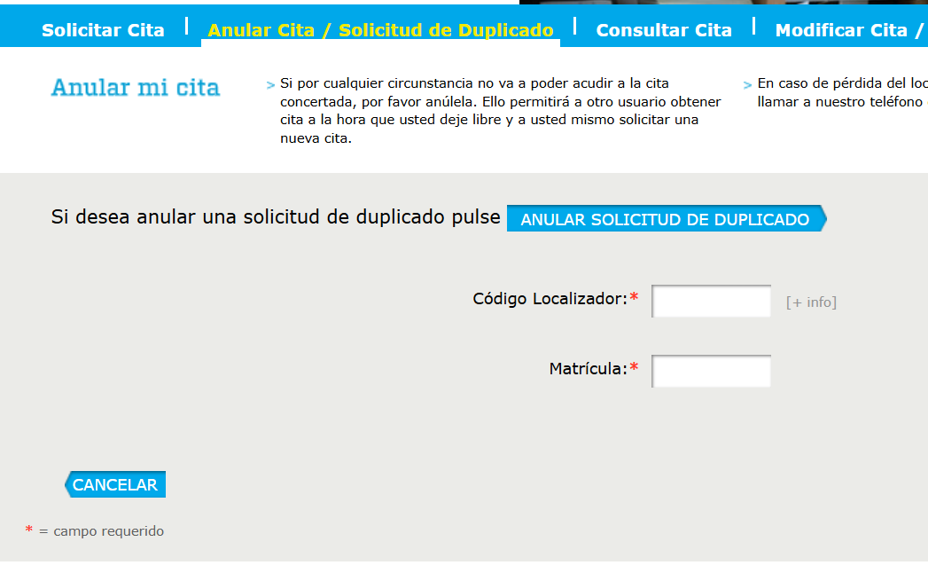 Anular cita ITV Carmona